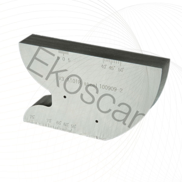 Bloc d’étalonnage en acier comprenant 3 rayons pour l’étalonnage des sondes à ondes transversales et longitudinales. Peut être utilisé pour déterminer le point d’index de la sonde et l’angle du faisceau.