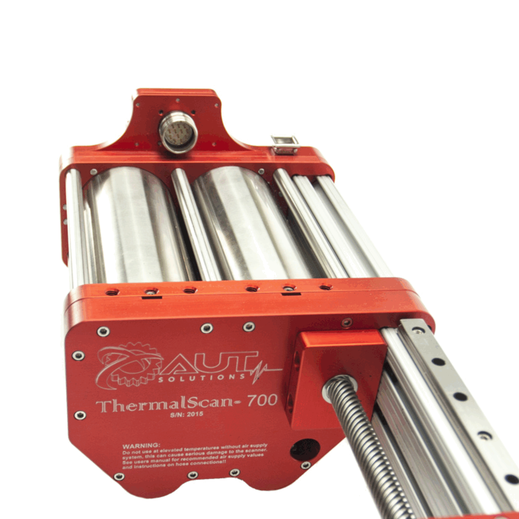 Le ThermalScan-700 est la meilleure solution pour réaliser des inspections à haute température sur des surfaces allant jusqu’à 371°C. Ce scanner automatisé à 2 axes, refroidi par air, peut scanner jusqu’à 40 cm par seconde avec une vitesse de roues allant jusqu’à 13 cm par seconde. Il est capable d’inspecter des composants allant de 3 pouces de diamètre jusqu’aux surfaces planes. Son design modulaire permet de remplacer les bras ou moteurs de balayage sur site en quelques minutes.