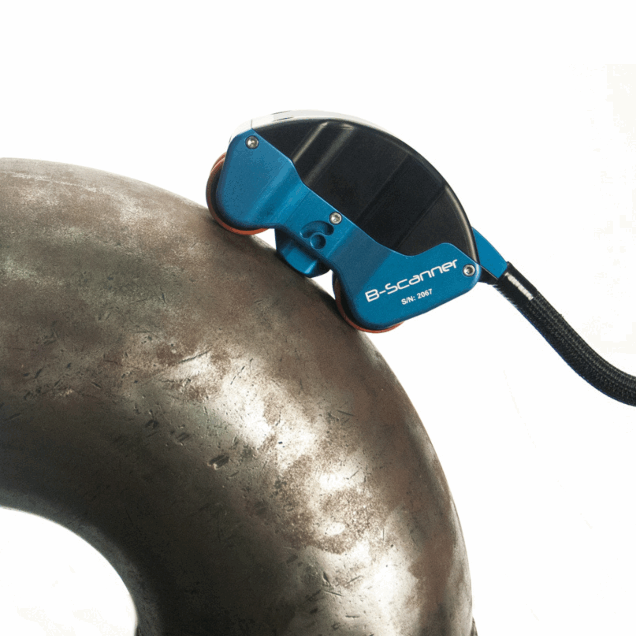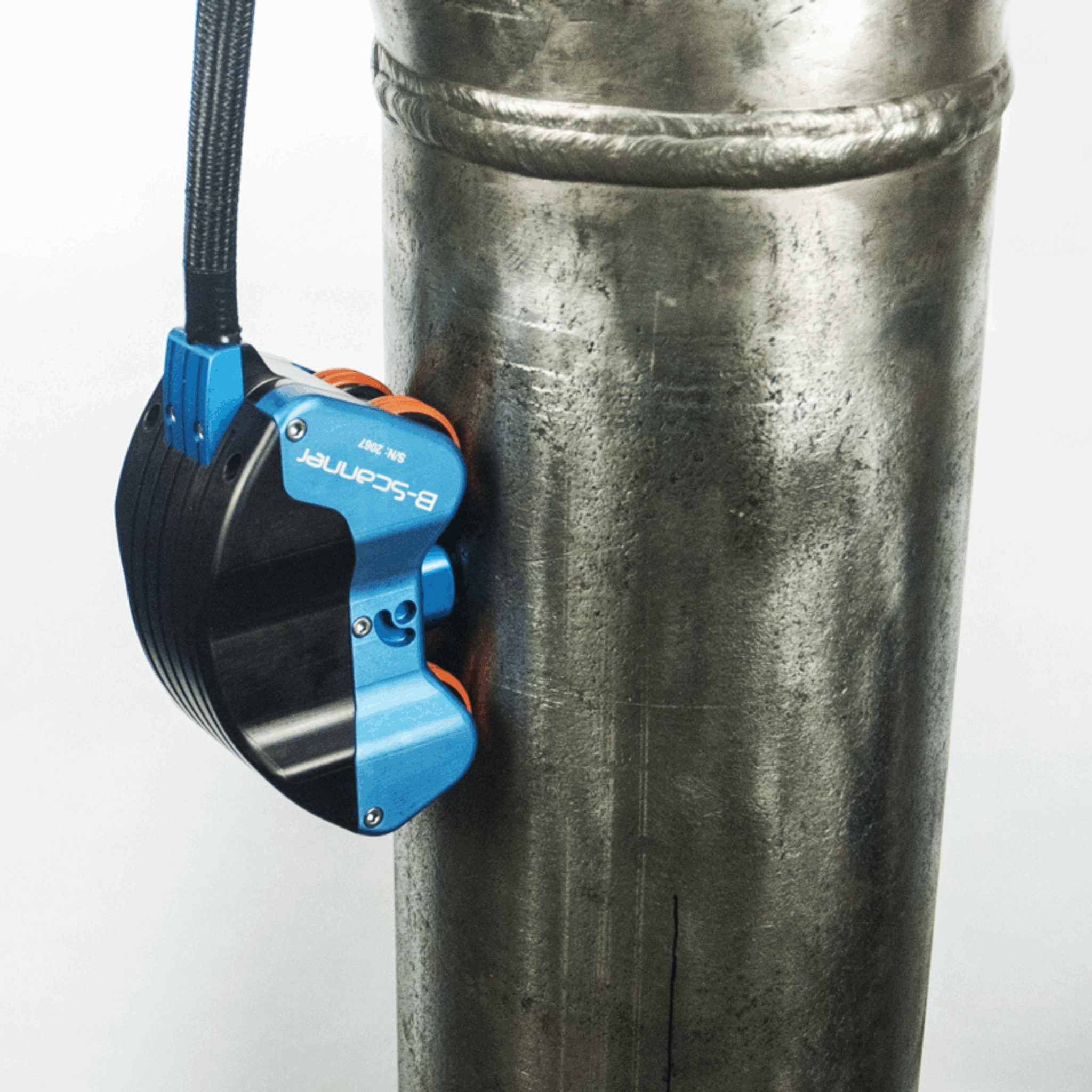 Ce scanner robuste, entièrement construit en aluminium, équipé de notre système de roue magnétique à contact doux propriétaire, peut scanner facilement des tuyaux de 76 mm de diamètre ou plus, et le transducteur à ressort s’adapte à la surface. Le B-Scanner est également fourni avec un encodeur étanche RME IP68.