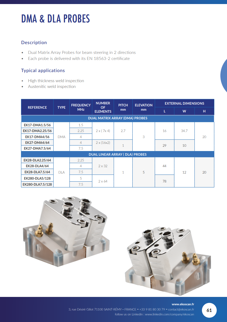 The EK280 Dual Linear Array range is designed for corrosion mapping application delivering wide coverage, minimal dead zone thanks to it dual configuration and strong penetration.