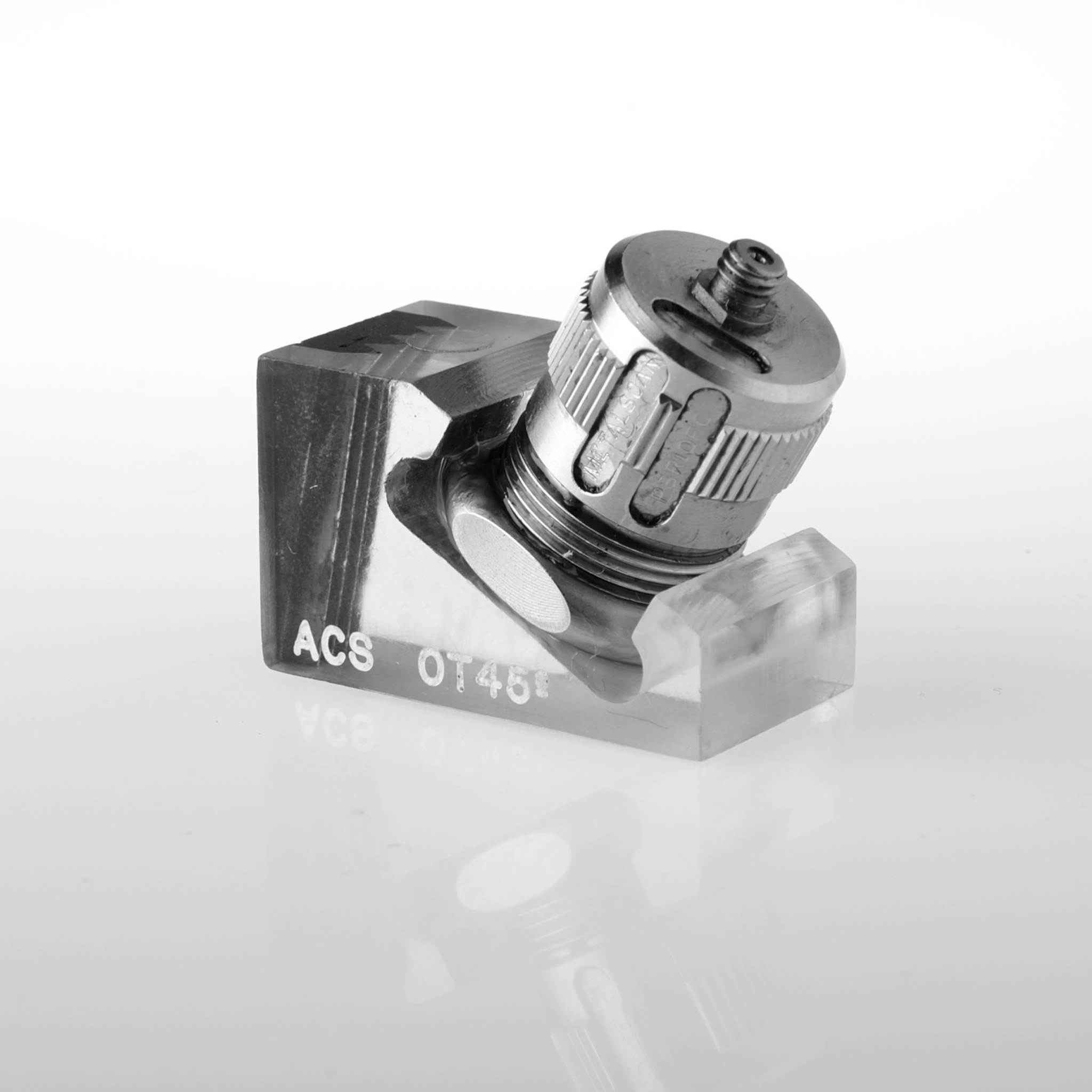 Interchangeable wedge for SWQ-13 probes.They are available for 35, 38, 45 60 and 70° longitudinal waves. Attachment between probe and wedge by thread.
