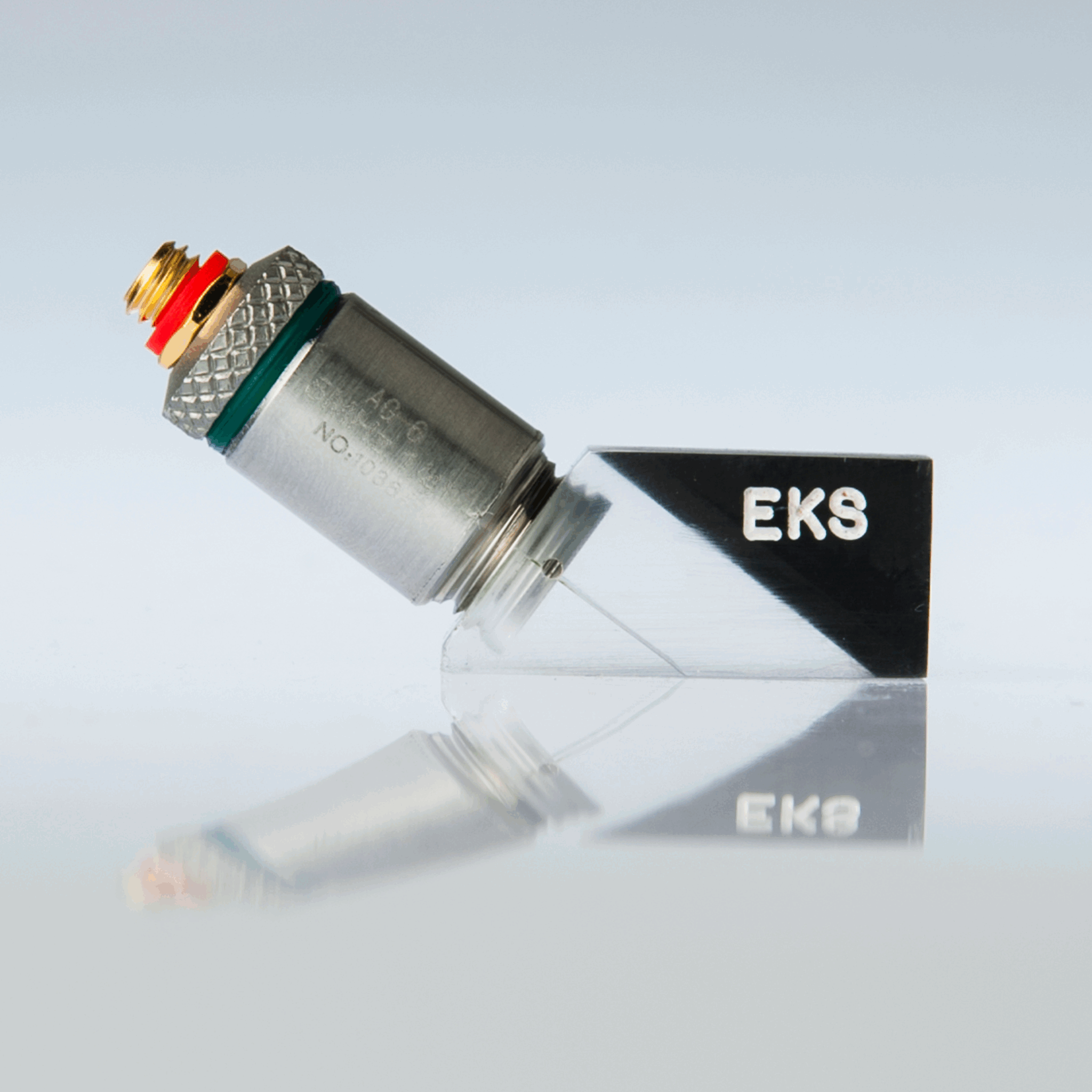 Interchangeable wedge for LG-13 probes.They are available for 38, 45 60 and 70 ° longitudinal waves. Attachment between probe and wedge by thread.