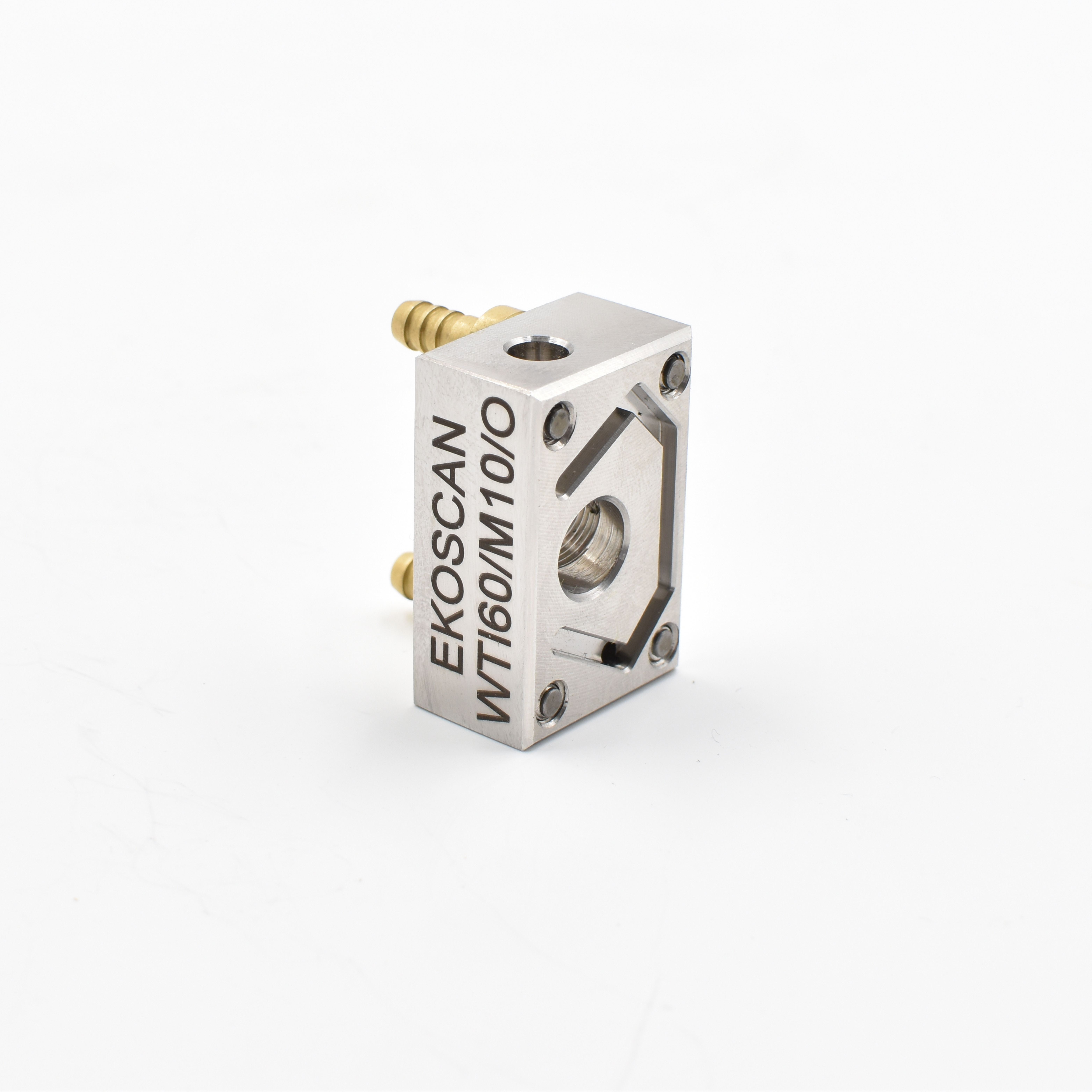 Wedges adapted to TOFD inspection. Compatible with TFDT/M10. They are available for 45, 55, 60 and 70 ° longitudinal waves. They are provided with integrated irrigation and carbides. Attached to scanner through pivot holes.