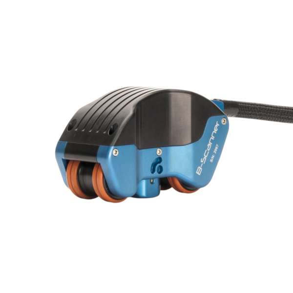 This rugged, all aluminum constructed scanner with our proprietary soft contact magnetic wheel system can smoothly scan on 3” OD pipe or greater and the spring loaded transducer will adjust to the surface. The B-Scanner also comes with a RME IP68 waterproof encoder..